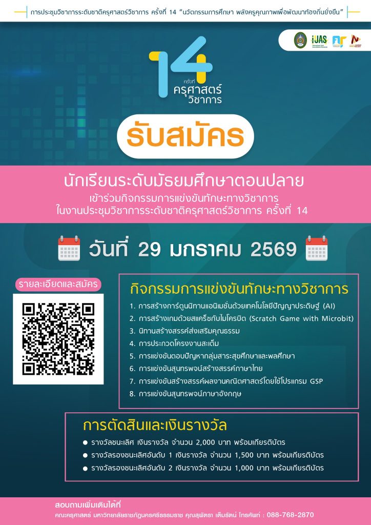 ขอเชิญชวนเข้าร่วม การประชุมวิชาการครุศาสตร์วิชาการ ครั้งที่ 14