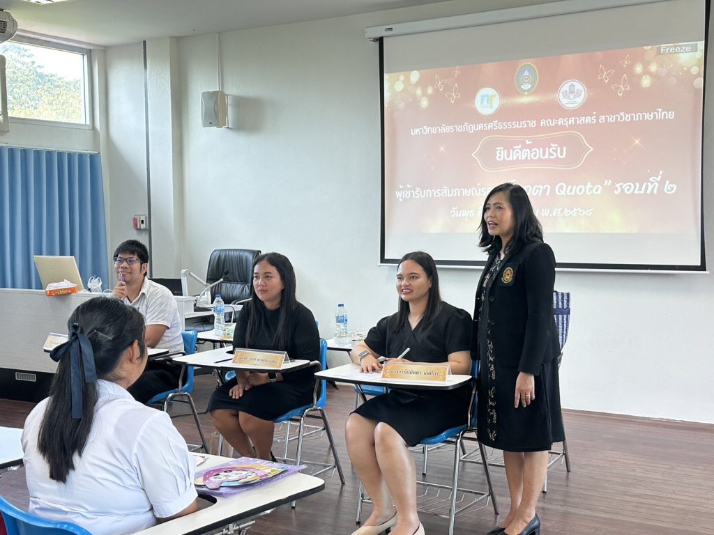 วันที่ 24 ธันวาคม 2568 คณะครุศาสตร์ มหาวิทยาลัยราชภัฏนครศรีธรรมราช ได้ดำเนินการสอบสัมภาษณ์นักศึกษาภาคปกติ ปีการศึกษา 2569 รอบที่ 2 โควตา (Quota NSTRU) เพื่อคัดเลือกผู้มีคุณสมบัติเหมาะสมเข้าศึกษาต่อในระดับอุดมศึกษา ตามแนวทางการรับนักศึกษาที่มุ่งเน้นการเปิดโอกาสทางการศึกษาอย่างทั่วถึงและเป็นธรรม โดยผู้ช่วยศาสตราจารย์นิตยารัตน์ คงนาลึก คณบดีคณะครุศาสตร์ ได้ให้เกียรติเยี่ยมชมการดำเนินงานในจุดสอบสัมภาษณ์ พร้อมทั้งกล่าวให้กำลังใจและสร้างขวัญกำลังใจแก่นักเรียนที่เข้ารับการสอบสัมภาษณ์ เพื่อเสริมความมั่นใจและสร้างบรรยากาศที่เป็นมิตร มีนักเรียนให้ความสนใจเข้ารับการคัดเลือกเป็นจำนวนมาก โดยคณะกรรมการสอบสัมภาษณ์ได้ดำเนินการตามหลักเกณฑ์และกระบวนการที่คณะครุศาสตร์และมหาวิทยาลัยกำหนดอย่างเคร่งครัด โปร่งใส และยุติธรรม