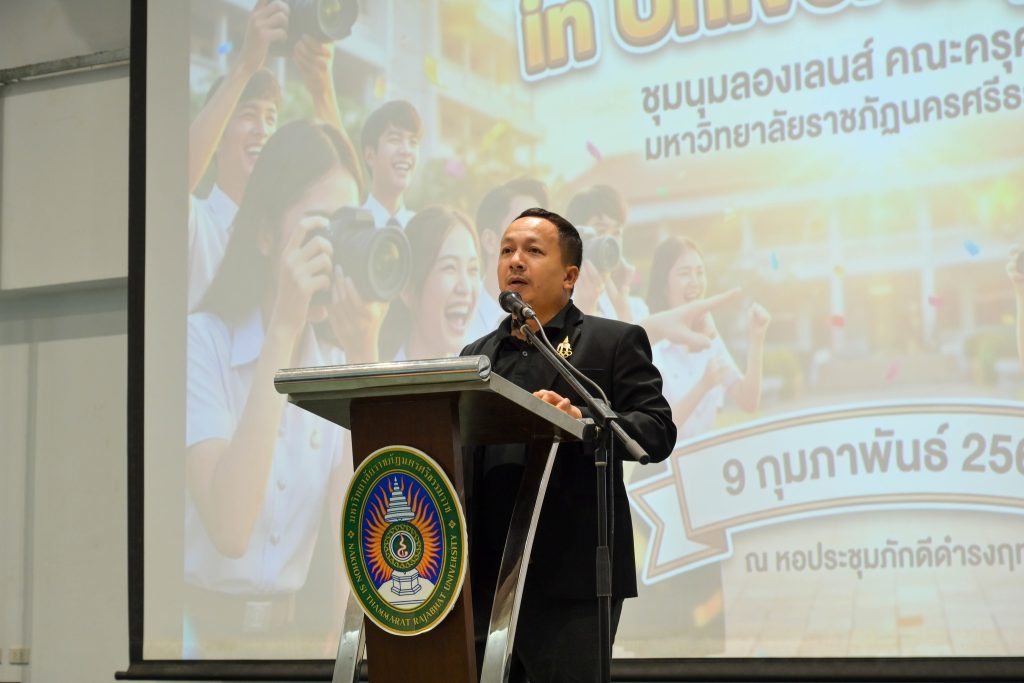 วันที่ 9 กุมภาพันธ์ 2569 ชุมนุมลองเลนส์ คณะครุศาสตร์ มรภ.นครศรีธรรมราช จัดกิจกรรม “Capturing Happy Moments in University Life” ณ หอประชุมภักดีดำรงฤทธิ์ ได้รับเกียรติจาก อาจารย์จีรนันท์ ปรีชาชาญ รองคณบดีฝ่ายกิจการนักศึกษา บริการวิชาการและพัฒนาท้องถิ่น เป็นประธานในพิธีเปิด พร้อมให้กำลังใจเหล่านักศึกษาในการสร้างสรรค์ผลงานภาพถ่ายเพื่อสะท้อนความสุขในชีวิตมหาวิทยาลัย โดยมี นายจีรณพัต นารีเลิศ นักวิชาการช่างศิลป์ สำนักงานอธิการบดี มหาวิทยาลัยราภัฏนครศรีธรรมราชเป็นวิทยากรให้ความรู้เกี่ยวกับการถ่ายภาพ เพื่อเสริมสร้างทักษะและสร้างแรงบันดาลใจให้นักศึกษาสามารถบันทึกภาพความประทับใจในรั้วมหาวิทยาลัยได้อย่างสร้างสรรค์