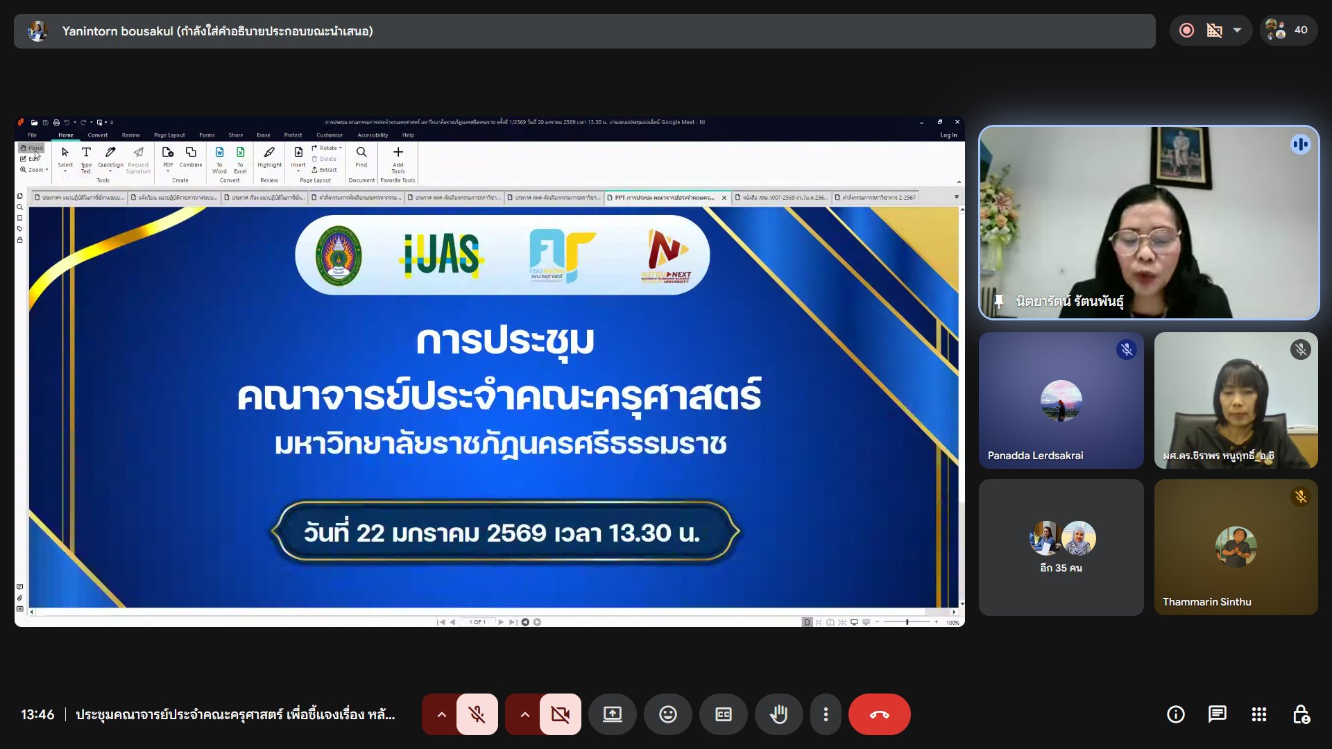 คณะครุศาสตร์ มรภ.นศ. จัดการประชุมคณาจารย์ประจำคณะครุศาสตร์ ผ่านระบบออนไลน์ Google Meet