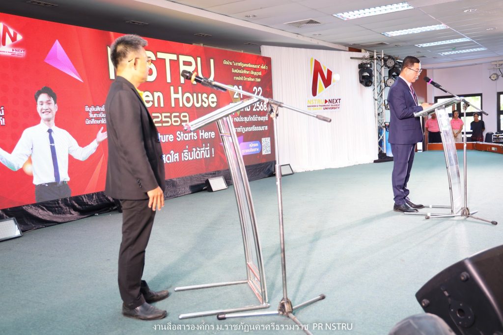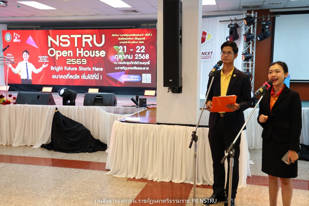 เมื่อวันที่ 21 ตุลาคม 2568 มหาวิทยาลัยราชภัฏนครศรีธรรมราช จัดกิจกรรม NSTRU Open House 2569 ครั้งที่ 2 ระหว่างวันที่ 21–22 ตุลาคม 2568 ณ หอประชุมภักดีดำรงฤทธิ์ มหาวิทยาลัยราชภัฏนครศรีธรรมราช โดยมี ดร.สมปอง รักษาธรรม รักษาราชการแทนอธิการบดี เป็นประธานในพิธีเปิด กิจกรรมในครั้งนี้จัดขึ้นเพื่อเปิดโอกาสให้นักศึกษาทุกคณะได้นำเสนอผลงานของตนเองและของคณะ ผ่านนิทรรศการและกิจกรรมสร้างสรรค์หลากหลายรูปแบบ เพื่อประชาสัมพันธ์หลักสูตร และสะท้อนภาพลักษณ์โดยรวมของมหาวิทยาลัยราชภัฏนครศรีธรรมราชในฐานะสถาบันอุดมศึกษาที่มุ่งเน้นการพัฒนาท้องถิ่นและผลิตบัณฑิตที่มีคุณภาพ ภายในงานมีกิจกรรมสำคัญ อาทิ พิธีมอบโล่และเกียรติบัตรแด่เครือข่ายความร่วมมือทางการศึกษา นิทรรศการประชาสัมพันธ์หลักสูตร และผลงานของคณะต่าง ๆ
