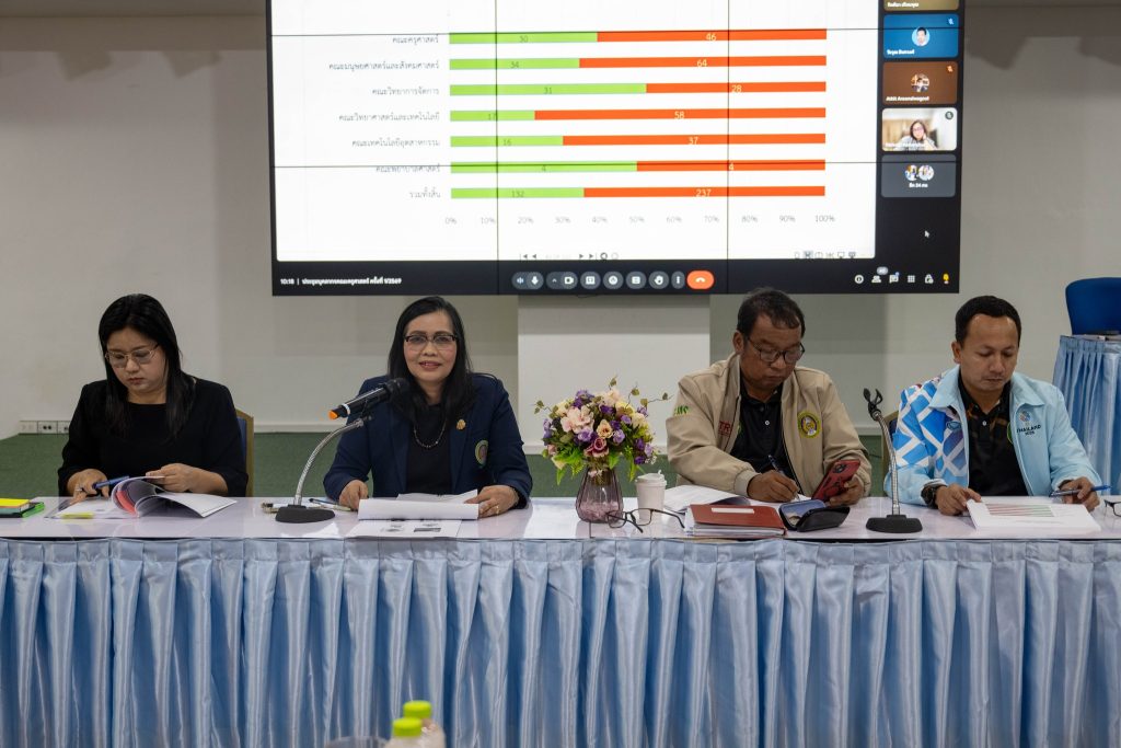 ในการนี้ คณะครุศาสตร์ นำโดย ผู้ช่วยศาสตราจารย์นิตยารัตน์ คงนาลึก คณบดีคณะครุศาสตร์ พร้อมด้วยคณะผู้บริหาร ประกอบด้วย ผู้ช่วยศาสตราจารย์ทรงวิทย์ ฤทธิกัณฑ์ รองคณบดีฝ่ายวิชาการ นวัตกรรมและศูนย์ครุศึกษา, อาจารย์จีรนันท์ ปรีชาชาญ รองคณบดีฝ่ายกิจการนักศึกษา บริการวิชาการและพัฒนาท้องถิ่น, อาจารย์อลิสา ตลึงผล รองคณบดีฝ่ายบริหาร วางแผนและวิจัย พร้อมด้วยผู้ช่วยคณบดี และบุคลากรสายวิชาการ สายสนับสนุนวิชาการ ได้ร่วมประชุมเพื่อรับทราบแนวทางการพัฒนาคุณภาพอาจารย์ และเตรียมความพร้อมรับการตรวจประเมินคุณภาพการศึกษาภายใน ประจำปีการศึกษา 2568 เมื่อวันศุกร์ที่ 20 มีนาคม พ.ศ. 2569 เวลา 10.00 น. ณ ห้องประชุม ชั้น 8 อาคาร 40 คณะครุศาสตร์ และผ่านระบบออนไลน์ Google Meet เพื่อร่วมกันขับเคลื่อนคณะครุศาสตร์สู่ความเป็นเลิศและการพัฒนาที่ยั่งยืนสืบไป