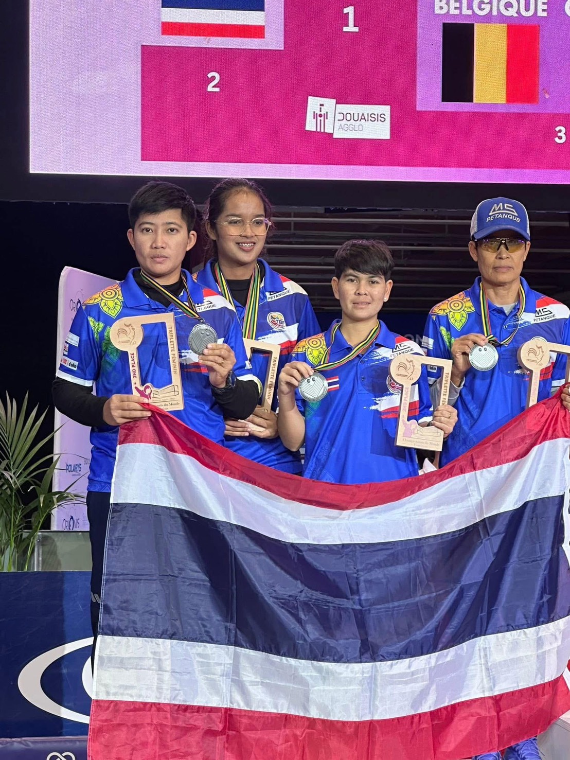 รายงานข่าวระบุว่า ทีมนักกีฬาเปตองหญิงทีมชาติไทย ได้สร้างผลงานอันยอดเยี่ยมตลอดการแข่งขันที่เมืองดูแอซิส (Douaisis) ประเทศฝรั่งเศส แสดงถึงศักยภาพด้านทักษะ ความแม่นยำ และไหวพริบในการแข่งขันอย่างเต็มที่ จนสามารถนำทีมเข้าสู่รอบชิงชนะเลิศได้อย่างสง่างาม ก่อนจะคว้าเหรียญเงินมาครองได้สำเร็จ ในประเภททีมหญิง ซึ่งถือเป็นความสำเร็จครั้งสำคัญของวงการเปตองไทยในเวทีโลก