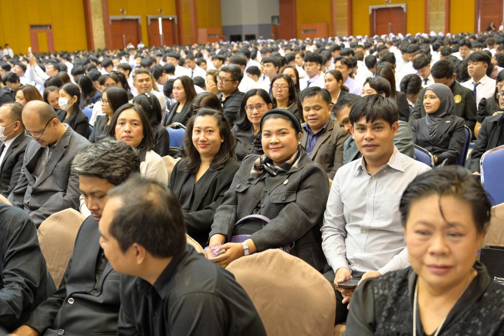 วันที่ 13 กุมภาพันธ์ 2569 ณ หอประชุมใหญ่ มหาวิทยาลัยราชภัฏนครศรีธรรมราช คณะครุศาสตร์เข้าร่วมพิธีราชภัฏสดุดี เนื่องในวันราชภัฏ ประจำปี พ.ศ. 2569 เพื่อเป็นการน้อมรำลึกในพระมหากรุณาธิคุณของพระบาทสมเด็จพระบรมชนกาธิเบศร มหาภูมิพลอดุลยเดชมหาราช บรมนาถบพิตร ที่ทรงพระกรุณาโปรดเกล้าฯ พระราชทานนาม “ราชภัฏ” และตราพระราชลัญจกรประจำพระองค์ให้เป็นตราสัญลักษณ์ประจำมหาวิทยาลัยราชภัฏทั่วประเทศ ในการนี้ คณะครุศาสตร์นำโดย ผู้ช่วยศาสตราจารย์นิตยารัตน์ คงนาลึก คณบดีคณะครุศาสตร์ พร้อมด้วยคณะผู้บริหารในตำแหน่งรองคณบดี ประกอบด้วย ผู้ช่วยศาสตราจารย์ทรงวิทย์ ฤทธิกัณฑ์ รองคณบดีฝ่ายวิชาการ นวัตกรรมและศูนย์ครุศึกษา, อาจารย์จีรนันท์ ปรีชาชาญ รองคณบดีฝ่ายกิจการนักศึกษา บริการวิชาการและพัฒนาท้องถิ่น และ อาจารย์อลิสา ตลึงผล รองคณบดีฝ่ายบริหาร วางแผนและวิจัย ตลอดจนบุคลากรสายวิชาการและสายสนับสนุนของคณะครุศาสตร์ เข้าร่วมพิธีอย่างพร้อมเพรียงกัน เพื่อแสดงความจงรักภักดีและพลังความสามัคคีในการสืบสานพระราชปณิธานด้านการศึกษาเพื่อการพัฒนาท้องถิ่น