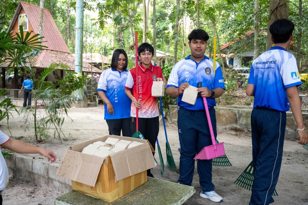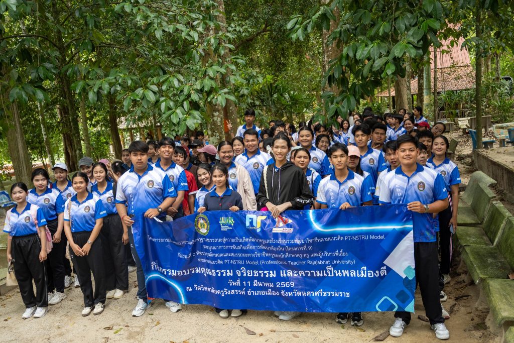 วันพุธที่ 11 มีนาคม 2569 ณ วัดวิทยาลัยครูรังสรรค์ คณะครุศาสตร์ มหาวิทยาลัยราชภัฏนครศรีธรรมราช ดำเนินกิจกรรมย่อยที่ 1 “กิจกรรมอบรมคุณธรรม จริยธรรม และความเป็นพลเมืองดี ในด้านการรักชาติ ศาสนา พระมหากษัตริย์” สำหรับนักศึกษาชั้นปีที่ 1 ซึ่งเป็นส่วนหนึ่งของกิจกรรมที่ 2 ในการพัฒนาคุณลักษณะและสมรรถนะทางวิชาชีพครูของนักศึกษาครู ครู และผู้บริหารพี่เลี้ยง ภายใต้โครงการยกระดับคุณภาพการผลิตครูฐานสมรรถนะสู่ความเป็นเลิศ พัฒนาครูและโรงเรียนร่วมพัฒนาวิชาชีพ ตามแนวคิด PT-NSTRU Model และการบูรณาการพันธกิจเพื่อการพัฒนาท้องถิ่น (โครงการที่ 9)